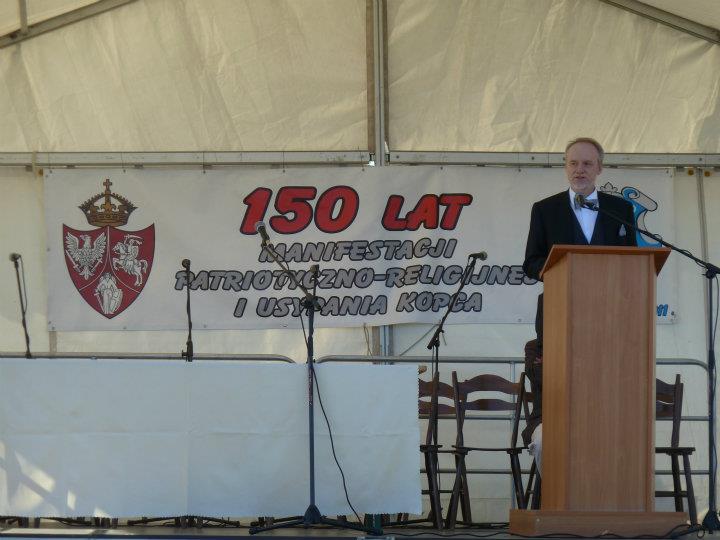 Tym bardziej muszą być tu obecni potomkowie osób, które zgromadziła na tych polach w 1861 r. manifestacja patriotyczna, która ściągnęła tysiące Polaków mających dość jarzma niewoli, jaką narzuciły na nas obce kraje. Osób, ktore usypały ten kopiec. Zachęcam Państwa do tego by szukać własnych historii rodzinnych. Przeszłość, wielkie wydarzenia historyczne, to nie jest coś co tworzyli dla nas jacyś ludzie z kosmosu, ale ludzie tacy jak my, nasi krewni, dziadkowie i babki, którzy potrafili wznieść się na moment i stanąć na wysokości zadań jakie postawiły przed nimi ich czas i ważne, przełomowe okoliczności. Historia to jest dziś, które zdarzyło się wczoraj. Planujemy jako Stowarzyszenie, by łącznie z mieszkańcami Horodła oraz miastem Zamość i muzeum w Zamościu, zorganizować tu okrągłą 600 letnią rocznicę Unii Horodelskiej. Mam nadzieję, ze wspomogą nas Państwo rownież swoim wkładem historycznym.