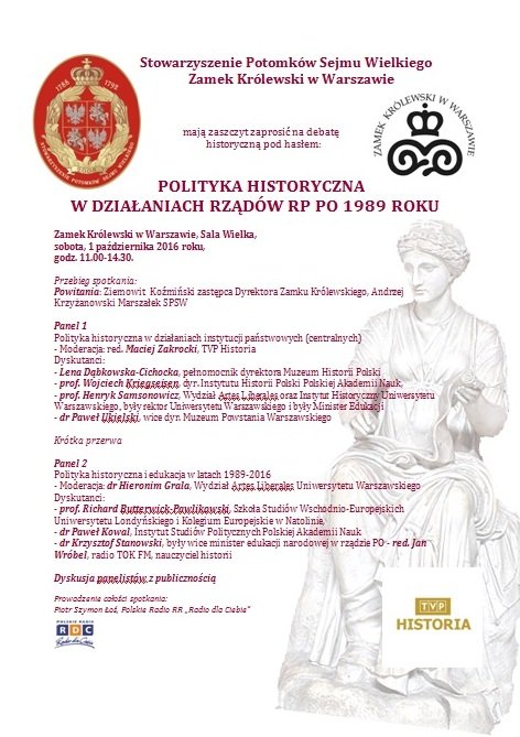 Stowarzyszenie Potomków Sejmu Wielkiego i Zamek Królewski w Warszawie serdecznie zapraszają na debatę pod hasłem: